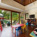 Move inside, and you will find a living space, a dining space, and two entertainment rooms. The kids have a playroom specifically designed for them. If you enjoy a good workout when you’re vacationing, the villa accommodates that with a gym.