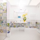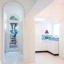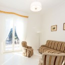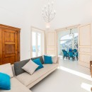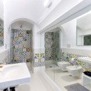 The interior spaces of Palazzo della Storia are equally captivating, adorned with high vaulted ceilings, exquisite furnishings, and the distinctive style of the Amalfi coast. Communal areas include a spacious living room, seamlessly connected to the elegant dining room through double doors. A sleek, glossy white kitchen adorned with vibrant ceramics adds a touch of sophistication. Additionally, the utility room features a guest bathroom complete with a toilet and sink, ensuring convenience and comfort for guests.