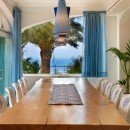 Step into the stunning open living room, where natural textures and coastal tones of white and blue are inspired by the nearby sea. The serene atmosphere is enhanced by large picture windows that allow the beauty of the surroundings to infuse the space. Sink into the comfortable sofas and chairs of the sitting area, which features a flat-screen TV, DVD player, and a beautiful open fireplace that adds warmth and coziness. A delightful large wooden table, surrounded by white slip-covered chairs, sets the stage for casual yet chic dining experiences. Completing this floor is a fully equipped galley kitchen with a view and a convenient guest bathroom.