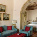 The high Baroque architectural details evident throughout the villa are highlighted by rich jewel-tone color scheme, gilt-framed works of art, and romantic terraces. There are sumptuously soft sofas, crystal chandeliers, lavish draperies, inlaid ceilings, and exquisite alcoves that make a stay at villa Dorata a life-long memory. Outside, Eden-like gardens and surrounding groves make lounging and dining al fresco as privileged an experience as life within. Couple all this with a full staff just waiting to attend to your needs, including freshly squeezed juices from the lemons and oranges grown outside your bedroom windows, homemade marmalades and pastries, the finest wine cellar, and two traditional Italian pizza ovens.
