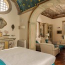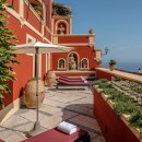 Villa Dorata, Positano, Amalfi Coast is a super-luxury private palazzo perched 194 steps above the glorious Mediterranean and the light of Positano. Live like royalty in a villa decorated in high Baroque style—amidst lush, tasseled draperies; meticulously selected works of art; ornate chandeliers; exquisite frescoed ceilings; and vaulted alcoves. The exterior is an oasis of verdant gardens, fragrant citrus groves, and picturesque outdoor terraces with breathtaking panoramic ocean and village views.