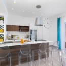 The interior showcases an airy layout merging a living room and kitchen, adorned with authentic furnishings and seamlessly extending onto the terrace. Complete with a plush sofa, smart TV, and dining area catering to 8, the kitchen is equipped with top-notch appliances to fulfill every culinary whim. The bedrooms, each with en-suite facilities, branch off from the living space.