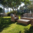The villa's meticulously landscaped grounds are designed to maximize outdoor living and provide an unparalleled experience. Lush gardens with panoramic seating, a covered pergola for al fresco dining, beautifully furnished areas shaded by trees, a private tennis court, and a stunning swimming pool all await guests, ensuring the utmost in comfort and enjoyment. Indeed, life couldn't be more idyllic at Villa Dodola!