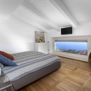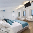 Bedroom 8: Third floor bedroom with a queen-size bed, A/C, WiFi, TV, access to the terrace, sea view, and en-suite bathroom with shower, double vanity, bidet and WC. 2 guests maximum