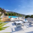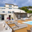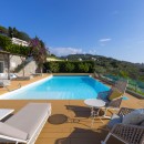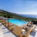 Spanning an impressive 450m² over four levels, the villa is designed to maximize its stunning location. Each floor features a spacious terrace that overlooks the beautifully landscaped grounds and the sparkling sea below, with the surrounding hillsides blanketed in vineyards and vibrant bougainvillea.