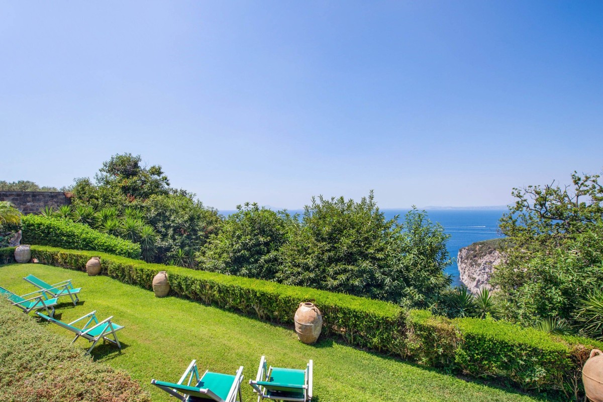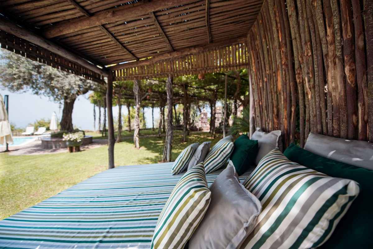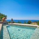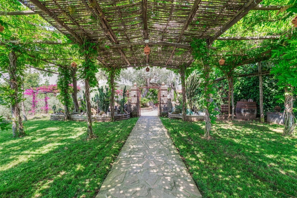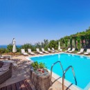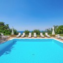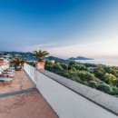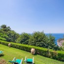 A spiral staircase leads to the panoramic rooftop, furnished with sunbeds and featuring an external shower. The property is adorned with several terraced manicured gardens and expansive flat lawns overlooking the sea, offering elegantly furnished zones for relaxation. The garden also features a convenient poolside loggia/veranda, complete with a wood-burning oven, BBQ facilities, and a professional-grade kitchen, allowing for delightful al fresco dining experiences. Enjoy a refreshing swim in the private swimming pool or unwind in the panoramic whirlpool, which accommodates up to eight people. An outdoor wellness area is also available for your relaxation and rejuvenation. In the evening, the pool, loggia, garden, and walkways are beautifully illuminated, creating a magical ambiance.