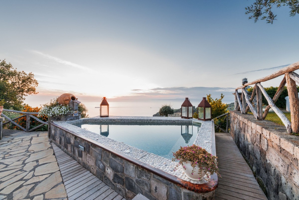 Villa Romeo, located in the Sorrento Area of the Amalfi Coast, is a modern and inviting three-story seaside property, conveniently situated just a 15-minute drive from Sorrento. Nestled within a private compound spanning 3,000 sqm, the villa offers stunning views of the entire Gulf of Naples, including glimpses of the picturesque island of Capri. Surrounding the villa are private woods, manicured gardens, and numerous shaded areas, providing a serene and tranquil atmosphere. The villa's contemporary style and vibrant color palette immediately transport you into a vacation mindset. The outdoor kitchen, patio, and uniquely designed pool area ensure a comfortable and memorable stay.