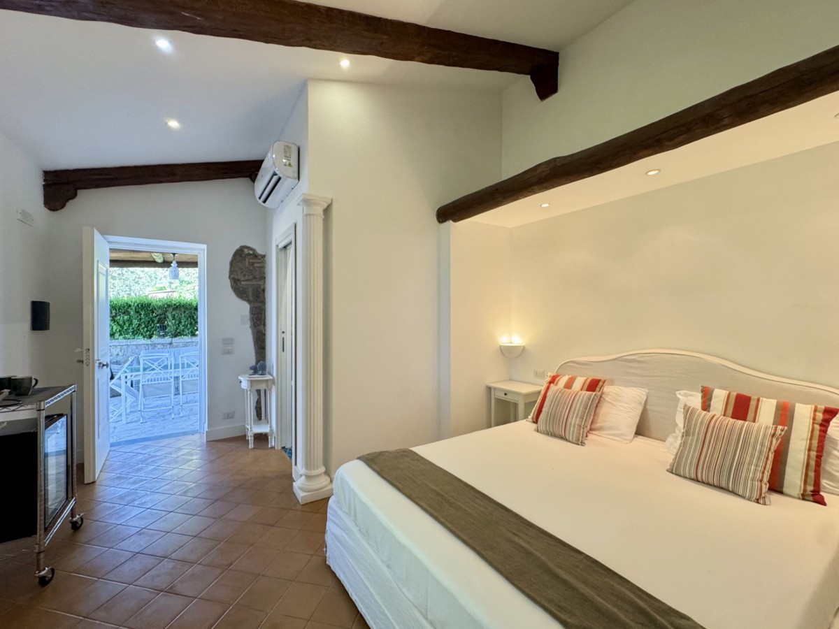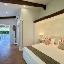 Bedroom 4: Ground floor bedroom with a queen-size bed, AC, TV, access to garden and en-suite bathroom with shower, vanity and WC. 2 guests maximum.