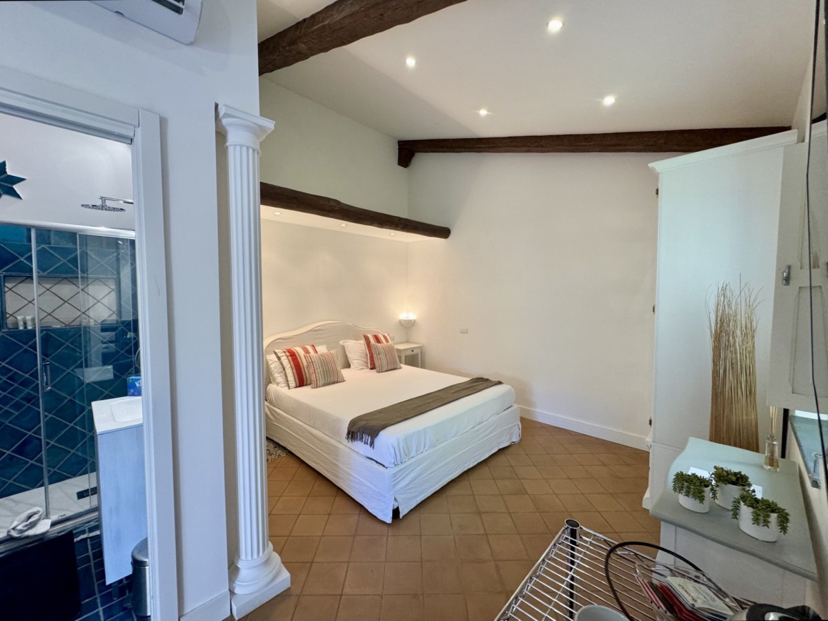 Bedroom 5: Second-floor bedroom with a queen-size bed, AC, TV, lounge area, and en-suite bathroom with shower, vanity and WC. 2 guests maximum.
