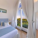 Bedroom 6: Second-floor mezzanine bedroom with a queen-size bed, AC, TV, shared lounge area, access to the terrace and shared bathroom (with Bedroom 7) with shower, vanity and WC. 2 guests maximum.