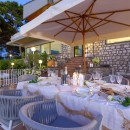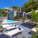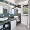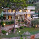 The villa, comprising a main building on two levels and an annex, exudes calm and tranquility with beautiful tiled floors and elegant furnishings throughout. Covering an expansive 350 square meters and accommodating up to 12 guests, the property features an elegantly furnished lounge, a dining table for 12, and a SAT TV. Guests have access to a private sea-view terrace equipped with a table and chairs. Additionally, two fully equipped kitchens provide convenience and flexibility during your stay.