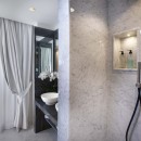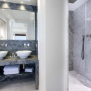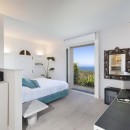 Bedroom 5: Bedroom with a queen size bed, A/C, TV, access through French windows to a private terrace, sea view , and en-suite bathroom with shower, bidet, vanity, and WC. 2 guests maximum