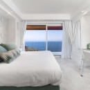 Bedroom 4: Bedroom with a queen size bed, A/C, TV, access through French windows to a private terrace, sea view , and en-suite bathroom with shower, bidet, vanity, and WC. 2 guests maximum