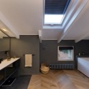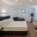Bedroom 3: Lower-floor bedroom with a king-size bed, A/C, TV, access to the garden and en-suite bathroom with shower, vanity and WC. 2 guests maximum