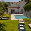 The villa offers luxurious outdoor amenities, including a private pool and a lush garden. An outdoor kitchen and a furnished area for al fresco dining, accommodating up to 12 people, enhance your experience. Every detail is designed to provide comfort and enjoyment. The terraces offer magnificent views and are beautifully furnished for the guests' relaxation. The meticulously maintained garden resembles a green oasis against the backdrop of the azure water and sky. The state-of-the-art swimming pool, featuring a waterfall and tanning ledge, adds to the allure of the surroundings, making the weather feel warmer and the days feel longer.