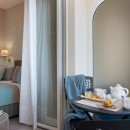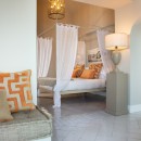 Bedroom 3: Ground floor bedroom with a queen-size bed (can be made up as two single beds) on a mezzanine connecting via stairs with the lower floor, office, A/C and shared bathroom (with bedroom 4) with shower, vanity and wc. 2 guests maximum