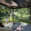 The panoramic terrace is furnished with stylish lounge seating and alfresco dining areas, while the surrounding garden features hammocks and shaded relaxation zones — all thoughtfully designed to blend nature and comfort.
