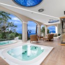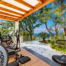 Unwind in the villa’s stunning 90 m² infinity pool (1.60 m deep and open year-round), set against a backdrop of lush greenery and designer loungers. Glass-paneled railings offer uninterrupted sea views that stretch seamlessly into the horizon.