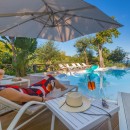 Breaking from the traditional villa layout, Villa Nina features six independent, open-plan suites instead of a shared central living room. Each suite harmoniously integrates a living and sleeping area, separated by graceful arches, and includes a private terrace with captivating sea views. These suites are designed for both privacy and style, offering a peaceful retreat after days spent exploring the coast or relaxing by the pool.