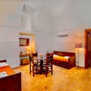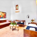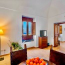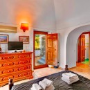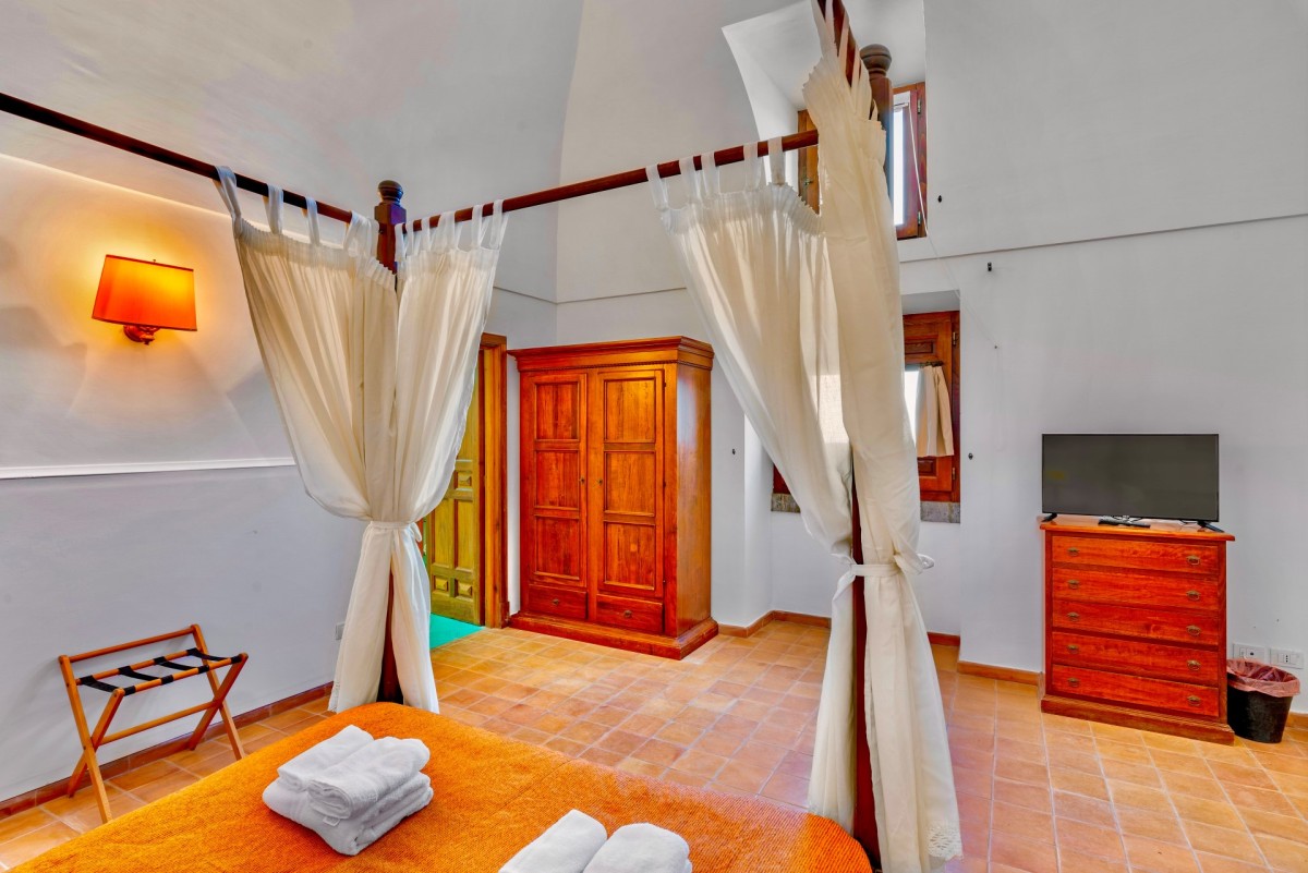 Bedroom 11: Bedroom with a queen-size bed, three single beds, sofa bed, sitting area, A/C, WiFi, TV, sea view and en-suite bathroom with shower, vanity, bidet and WC. 5 guests maximum
