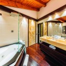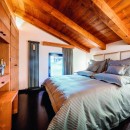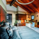 An entire floor is thoughtfully dedicated to an expansive living room boasting a wet bar, a games area, and a TV lounge, extending a warm welcome to guests entering the chalet. To elevate the opulence, the chalet encompasses a master bedroom suite, complete with a king-size bed, dual walk-in closets, a bathroom hosting a Jacuzzi bath, and a fireplace.