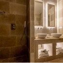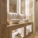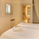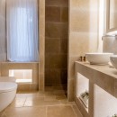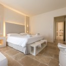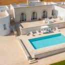 Spanning 400 square meters, the villa features a layout that emphasizes convenience and comfort, with all amenities easily accessible on one floor. Two double bedrooms flank the east wing, while another two occupy the west, with a twin room nestled near the guest bathroom and secondary entrance. Adorned in soothing neutral hues, the bedrooms offer ample storage and en-suite facilities, ensuring privacy and relaxation.