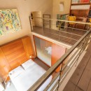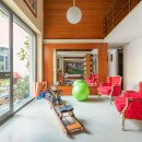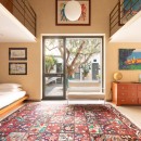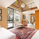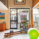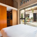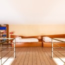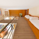 Ideal for young families, the split-level bedroom with its fitness area and mezzanine adds versatility. Two additional single beds above and direct garden access below create a playful, open feel—like a loft within a loft.