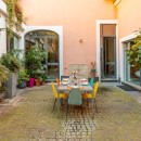 It’s hard to choose a favorite spot. The show-stopping kitchen is a definite contender, but so is the private garden—centred around a majestic century-old olive tree and designed to echo the inner courtyards of ancient Roman homes.