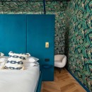In the bedroom, elegance continues with oak parquet flooring and regal Cole & Son wallpaper. A bold headboard doubles as a room divider, concealing a stylish walk-in wardrobe behind. And just outside, a peaceful private terrace awaits—the perfect spot for a quiet morning espresso or evening glass of wine with someone special.