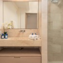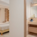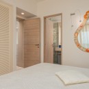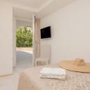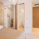 Bedroom 2: Lower floor bedroom with a queen-size bed, A/C, TV, WiFi, access to the terrace, and en-suite bathroom with shower, vanity and WC. 2 guests maximum.
