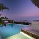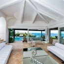 The villa features a well-appointed living room that opens up to the veranda and pool area, indoor and outdoor dining spaces, a fully equipped kitchen, a barbecue area, and a pizza oven. It also includes a staff bedroom with a bathroom.