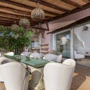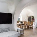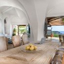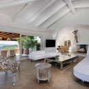Available for both summer rentals and sale, Villa Pantogia boasts spacious outdoor areas and verandas that overlook a panoramic swimming pool, creating a light and airy atmosphere, perfect for outdoor relaxation. The white and creamy tones of the villa, adorned with luxurious furnishings, harmoniously blend with the lush greenery and the vibrant blue sky. Privacy and tranquility are guaranteed, providing a serene retreat.