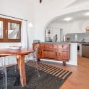 The house underwent a complete refurbishment a few years ago, and now boasts two double bedrooms with ensuite bathrooms featuring showers, as well as a triple room with a bathroom equipped with a bath and shower. The living space consists of an open-plan dining and living room with a cozy fireplace, a fully equipped kitchen, a studio room, and multiple terraces. Additionally, there is a solarium and a refreshing swimming pool for guests to enjoy. The maximum capacity of the property is seven guests.