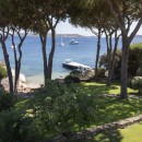 Spanning over 2,000 square meters, the villa's garden showcases majestic centuries-old pines, an immaculate English lawn, and a variety of lush plants. The garden gracefully slopes down to meet the sea, culminating in a beach of extraordinary beauty. For those with a passion for boating, the villa provides a private dock capable of accommodating boats up to approximately 16 meters in length, complete with the necessary concessions and a convenient gangway for easy access to land. Additionally, a private buoy is available for anchoring a boat, while a covered parking space, adorned with a charming pergola, awaits on the street side of the entrance.