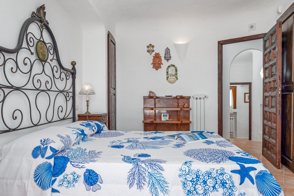 A charming two-level annex comprising a double bedroom and a twin bunk-bed room—with private bathrooms—on the first floor, and an upper-level living area with kitchen and a panoramic terrace.