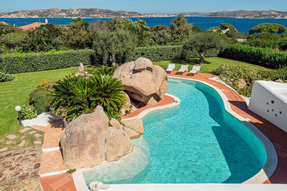 Villa Il Melograno, located in the enchanting Sardinian village of Porto Rafael, sits within a lush English-style park filled with olive and fruit trees. The property offers panoramic terraces, a solarium, and a swimming pool. Just 300 meters from the village center, it provides easy access to the iconic little square, the small harbor, the beach, and the crystal-clear waters facing the Maddalena Archipelago.