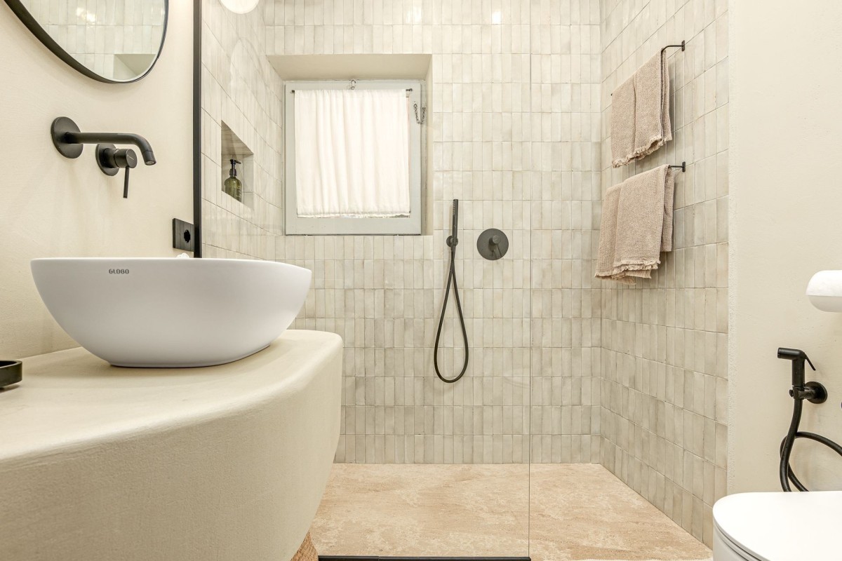 Bedroom 4: Bedroom with a double bed, access to terrace and en-suite bathroom with shower, vanity and WC. 2 guests maximum