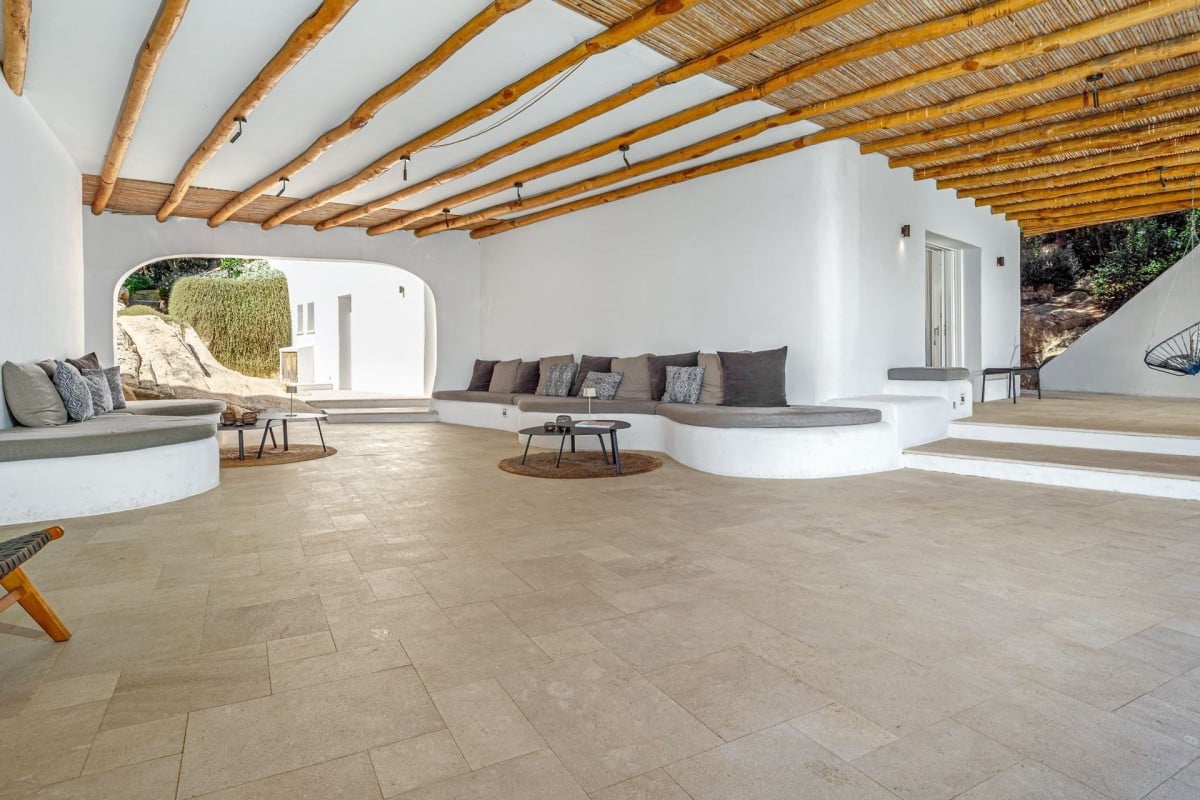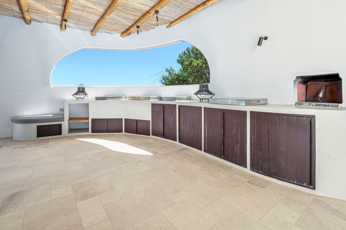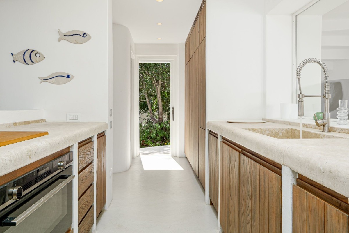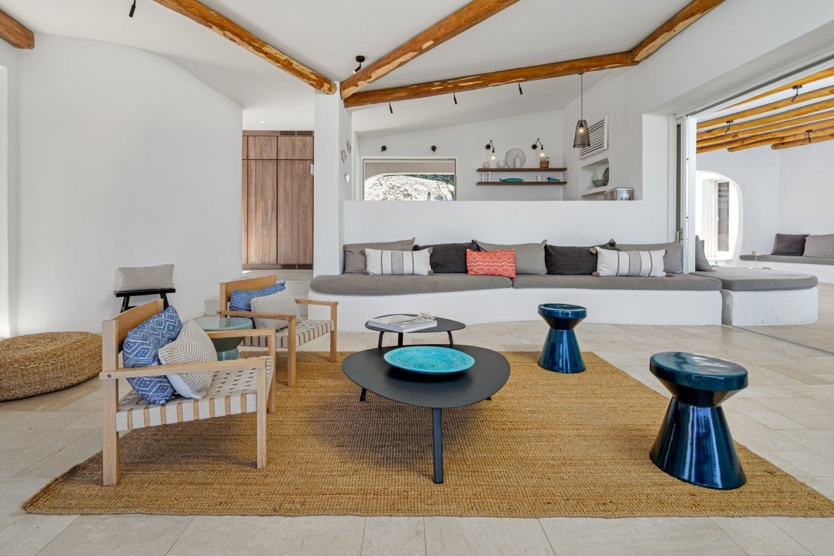 Guests can enjoy panoramic sea views, a heated infinity pool, and expansive outdoor living spaces that include an al fresco kitchen, a traditional pizza oven, and a dining area for up to 10 guests. The interiors are bright and airy, thoughtfully furnished with high-quality materials that create a seamless transition between indoor and outdoor living.
