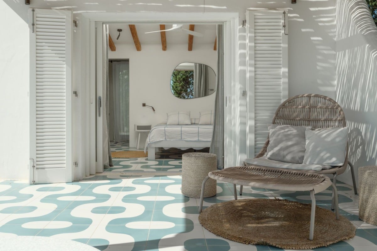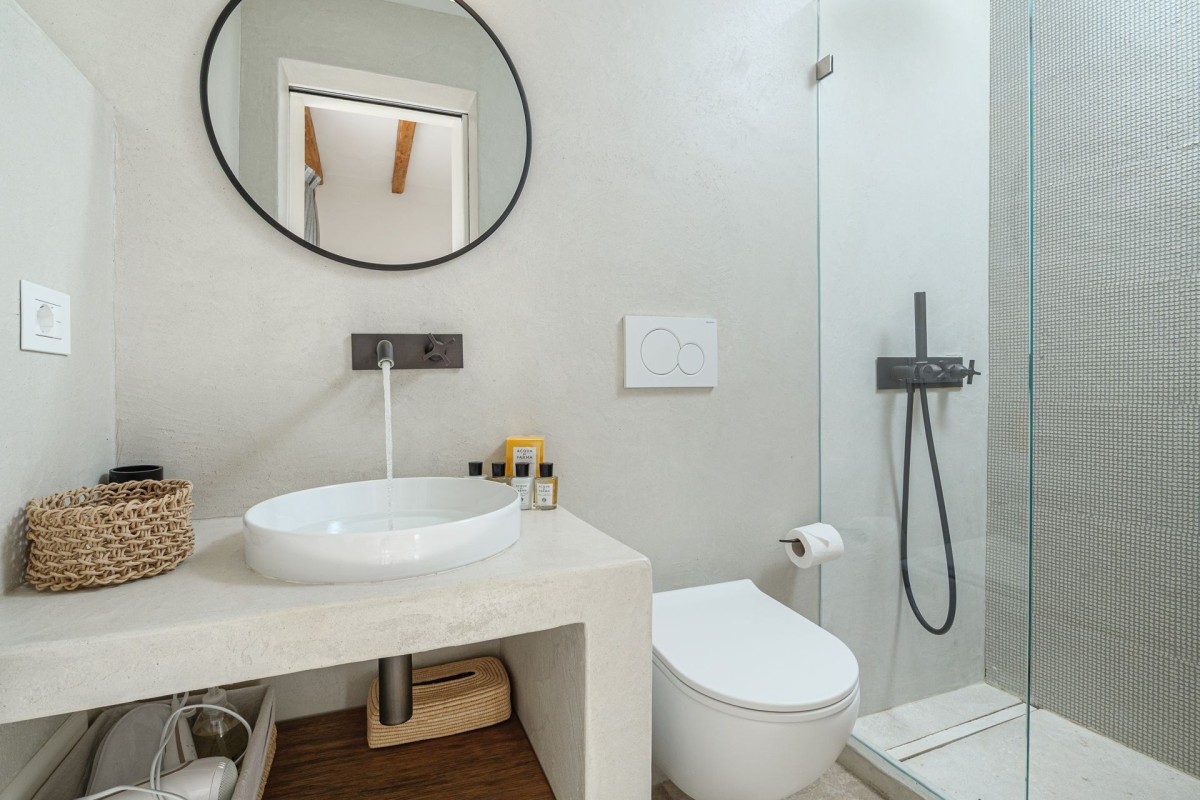 Bedroom 5: Ground floor Master bedroom with a double bed, A/C, WiFi, access to the terrace, sea view, and en-suite bathroom with shower, vanity and WC. 2 guests maximum. (Outdoor access)