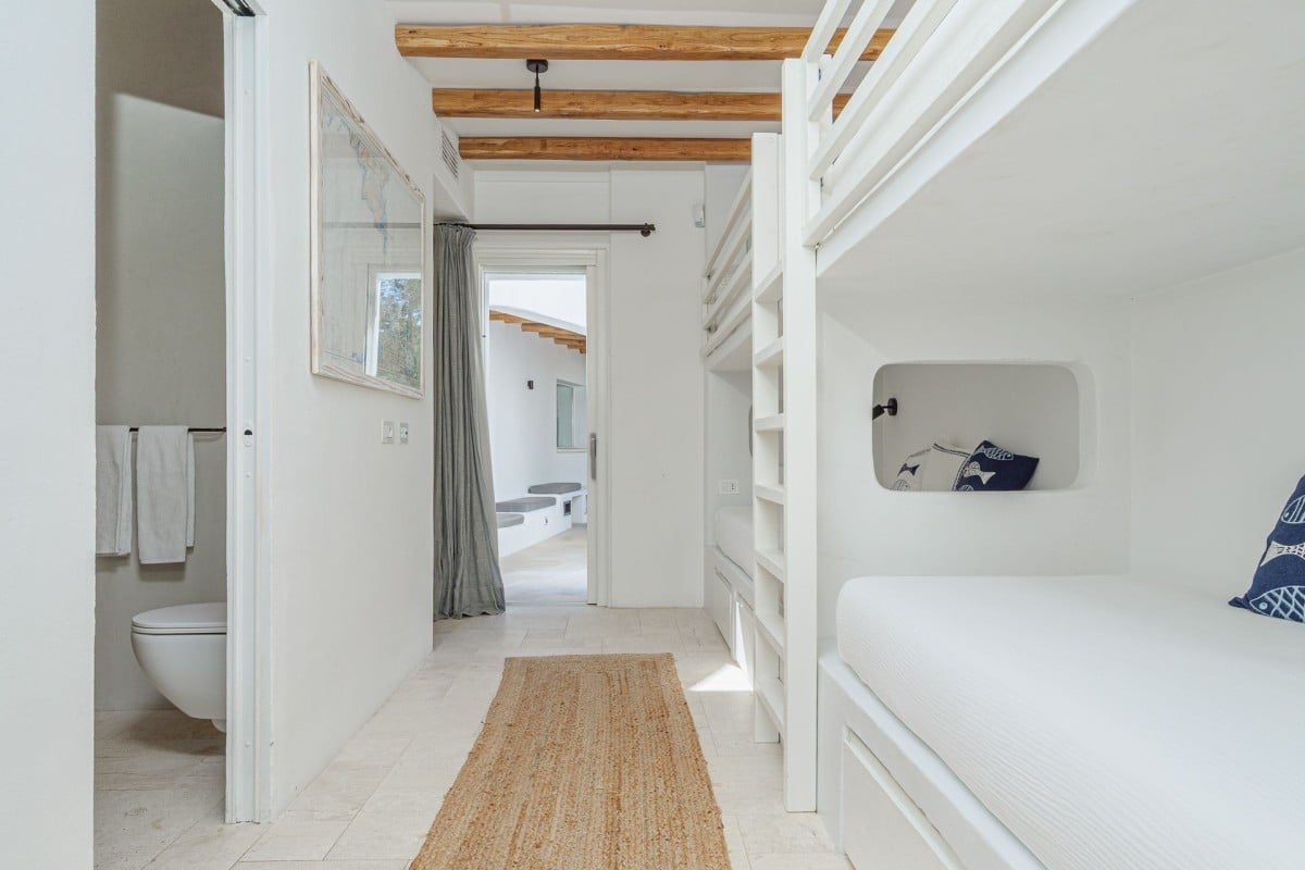 Bedroom 3: Ground floor bedroom with two bunk beds, A/C, WiFi, and en-suite bathroom with shower, double vanity and WC. 2 guests maximum. (Outdoor access)