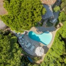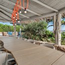 The villa boasts a stunning outdoor area, generously furnished with sofas and tables for enjoyable al fresco meals. Guests can relax by the swimming pool or on the terraces while taking in the magnificent surroundings.