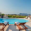 The villa is surrounded by a generous and well-maintained garden, adorned with indigenous Mediterranean plants. You'll also find an extensive pool with a sunbathing area, perfect for relaxation. To further enhance your stay, there is a spa area equipped with a Jacuzzi and a soothing waterfall.
