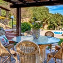 Perched in an elevated position, the charming villa boasts a panoramic pool affording unobstructed sea views, inviting guests to unwind amidst the natural splendor. The patio and pergola offer ample seating for enjoying the vistas and seeking shade during the extended summer hours.