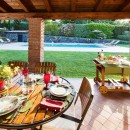 In addition to the stylish interior, Viagrande offers a range of amenities to ensure a relaxing stay. These include an air-conditioned fitness room with a bathroom, a covered terrace with table tennis and foosball, a spacious garden with a lawn and BBQ area, and a stunning private swimming pool with a sun terrace. Whether you're unwinding by the pool, working out in the gym, or enjoying a meal on the terrace, Viagrande provides the perfect environment for relaxation and enjoyment.