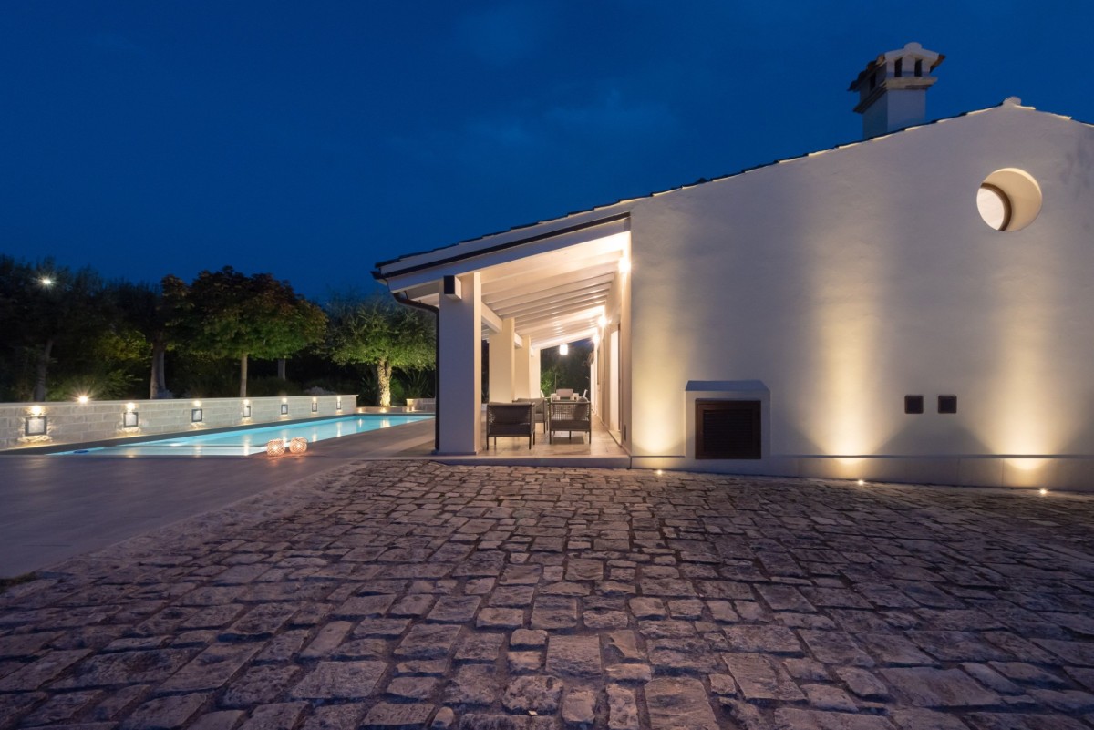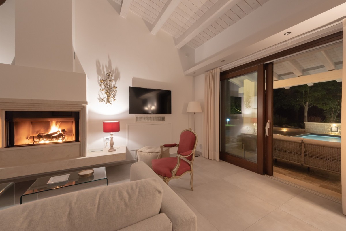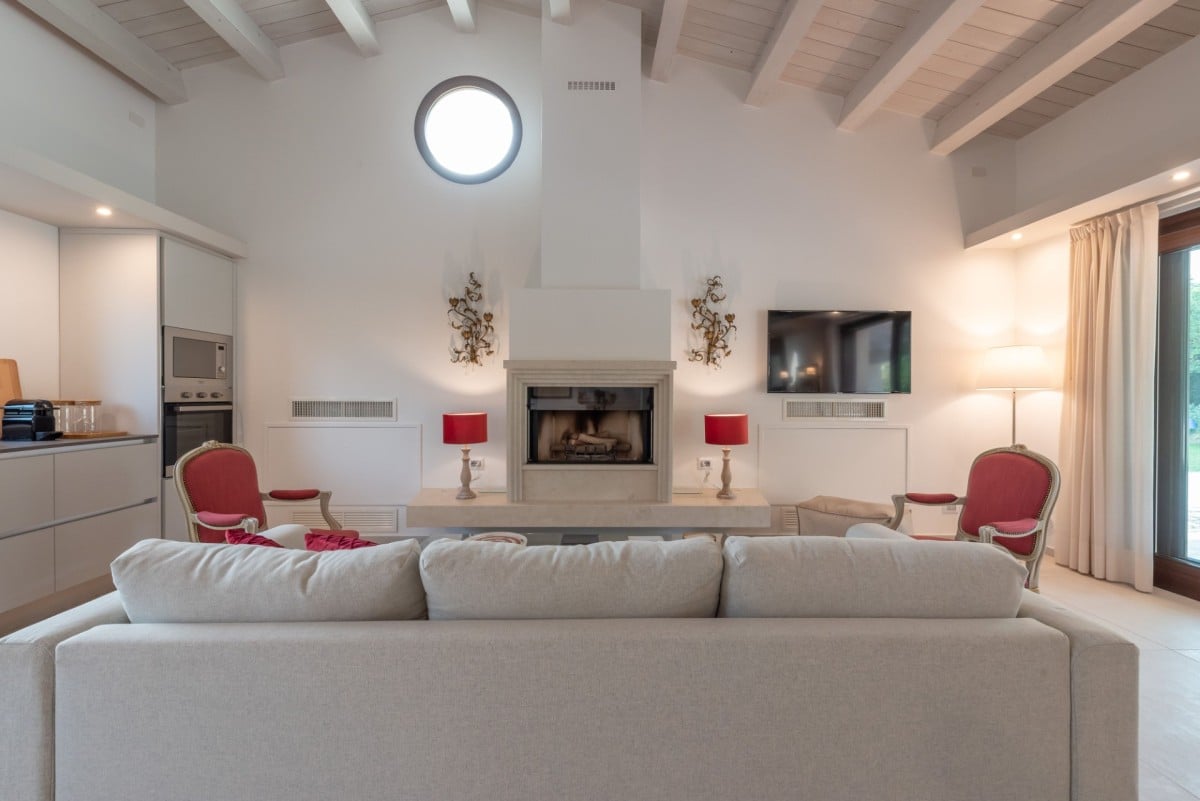 Outdoors, guests can fully unwind by the swimming pool with hydromassage, enjoy the shaded veranda, or prepare meals in the outdoor kitchen with BBQ—essential features for a truly relaxing holiday experience.