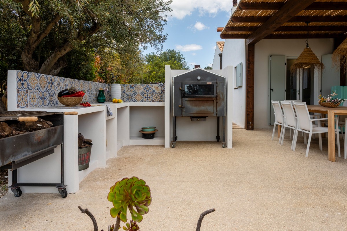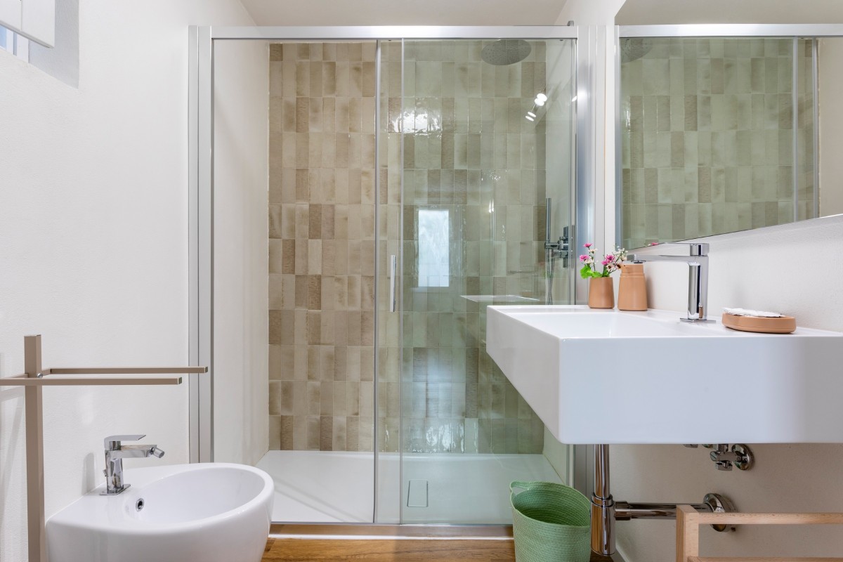 The property features four bedrooms, three located in the main building and one in a separate annex. Inside the main house, you will find a bright kitchen and living room, along with three double bedrooms, each with a private bathroom. Two of these bedrooms also include a sofa bed. Two rooms are on the ground floor, while the third is on the first floor, offering space and privacy for all guests.