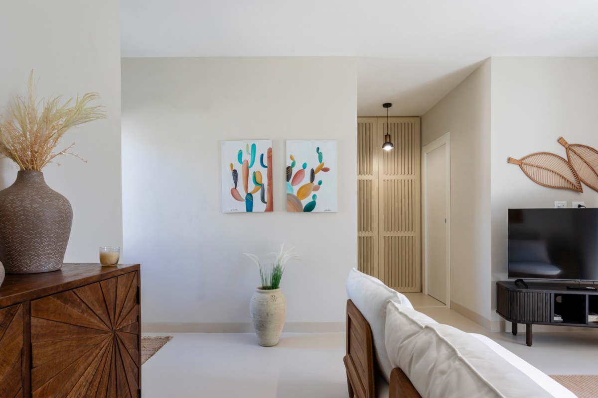 The annex is ideal for added independence, with its own entrance, a small living room with kitchenette and sofa bed, and a wooden staircase leading to a mezzanine with a double bed and a single bed. The annex also has a private bathroom. With additional sleeping arrangements, the villa can comfortably accommodate up to 12 guests.