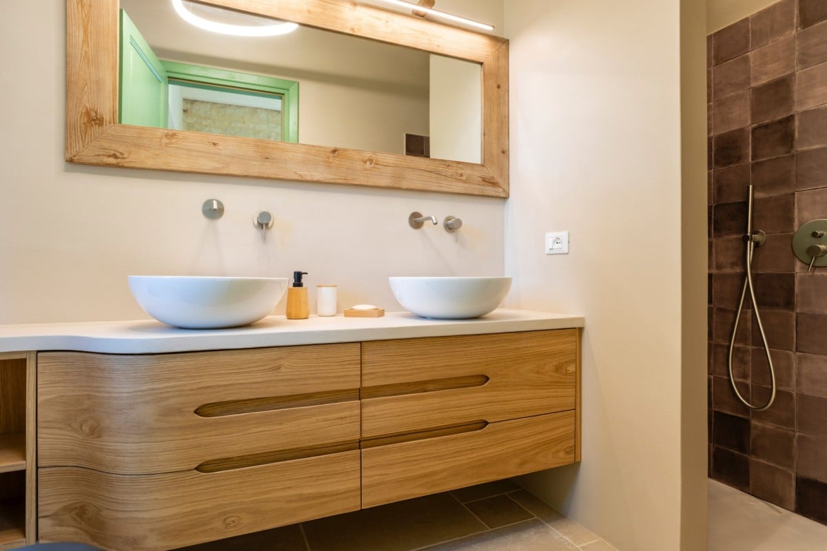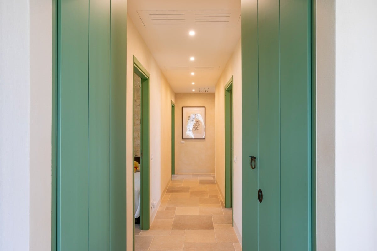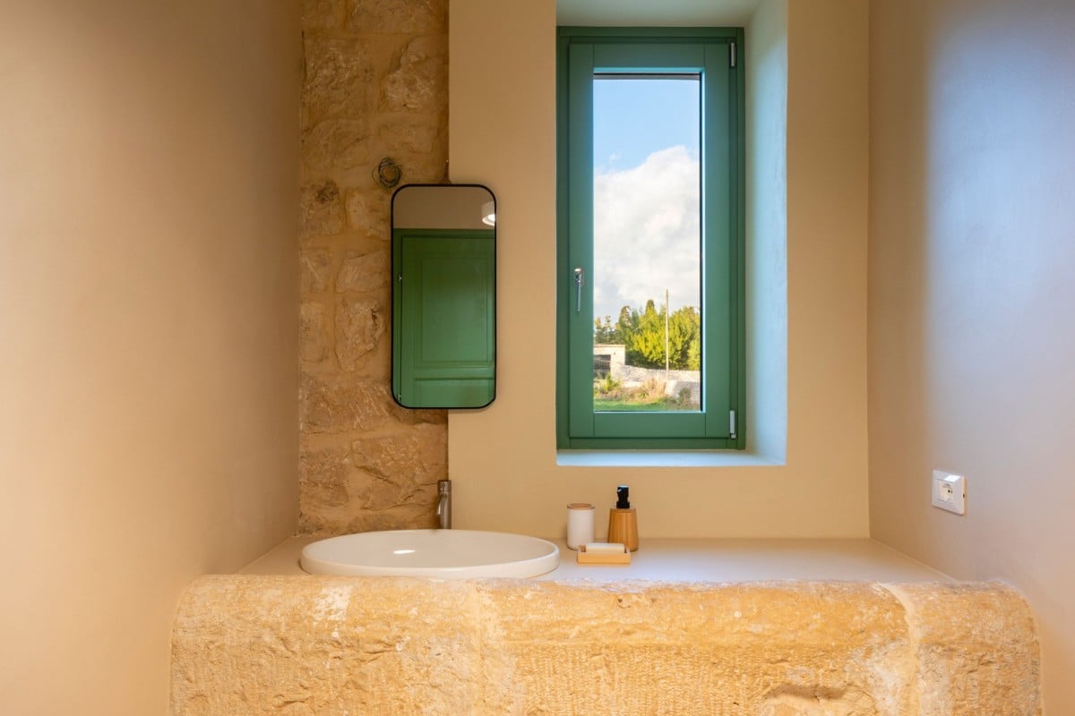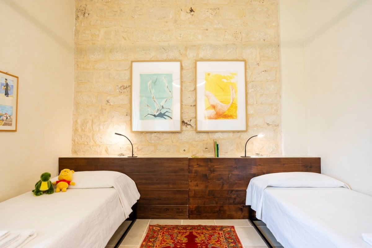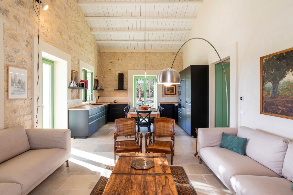 Inside, Casa Gna Razia reflects Sicilian tradition reinterpreted with contemporary style. Stone walls, natural materials, and simple yet welcoming furnishings define bright and airy interiors, enhanced by large windows overlooking the patio and pool. The living area is designed for comfort and conviviality, while the five air-conditioned double bedrooms and four bathrooms ensure privacy and tranquility for every guest, offering the perfect environment for rest and rejuvenation.