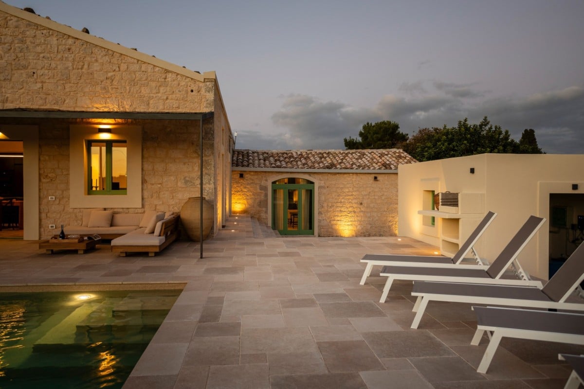 Nestled in the peaceful countryside of Modica, Casa Gna Razia is a charming holiday villa that embodies authentic Sicilian character, where traditional local stone blends seamlessly with modern lines and refined comforts. A private oasis immersed in nature, it is the perfect retreat for those wishing to experience the most genuine side of Sicily, surrounded by fiery sunsets, Mediterranean scents, and a deep sense of well-being. Accommodating up to 10 guests, the villa is ideal for family gatherings and group getaways.