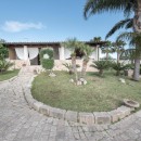 A generous garden with Mediterranean plants, a private swimming pool, and ample parking space surrounds the property.